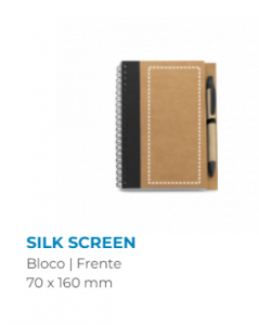 Caderno B6 espiral com 60 folhas não pautadas de papel reciclado e capa dura em papel craft. Incluso esferográfica. 130 x 177 mm