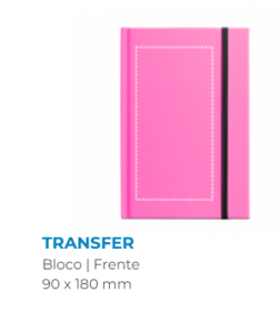 Caderno A5 com capa dura em PU fluorescente. Contém 96 folhas pautadas brancas com a borda em preto, fita separadora e elástico. 140 x 210 mm