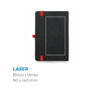 Caderno A5 com capa dura em PU térmico e 80 folhas pautadas. Contém elástico, fita separadora, bolso em papel na parte traseira da capa e suporte para esferográfica (não inclusa). 140 x 210 mm