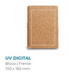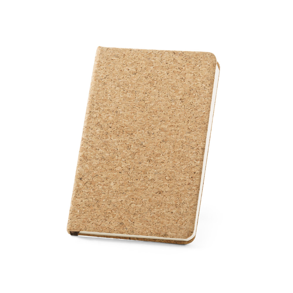 Caderno capa dura A5 em cortiça com 80 folhas não pautadas em cor marfim e fita separadora. 140 x 210 mm