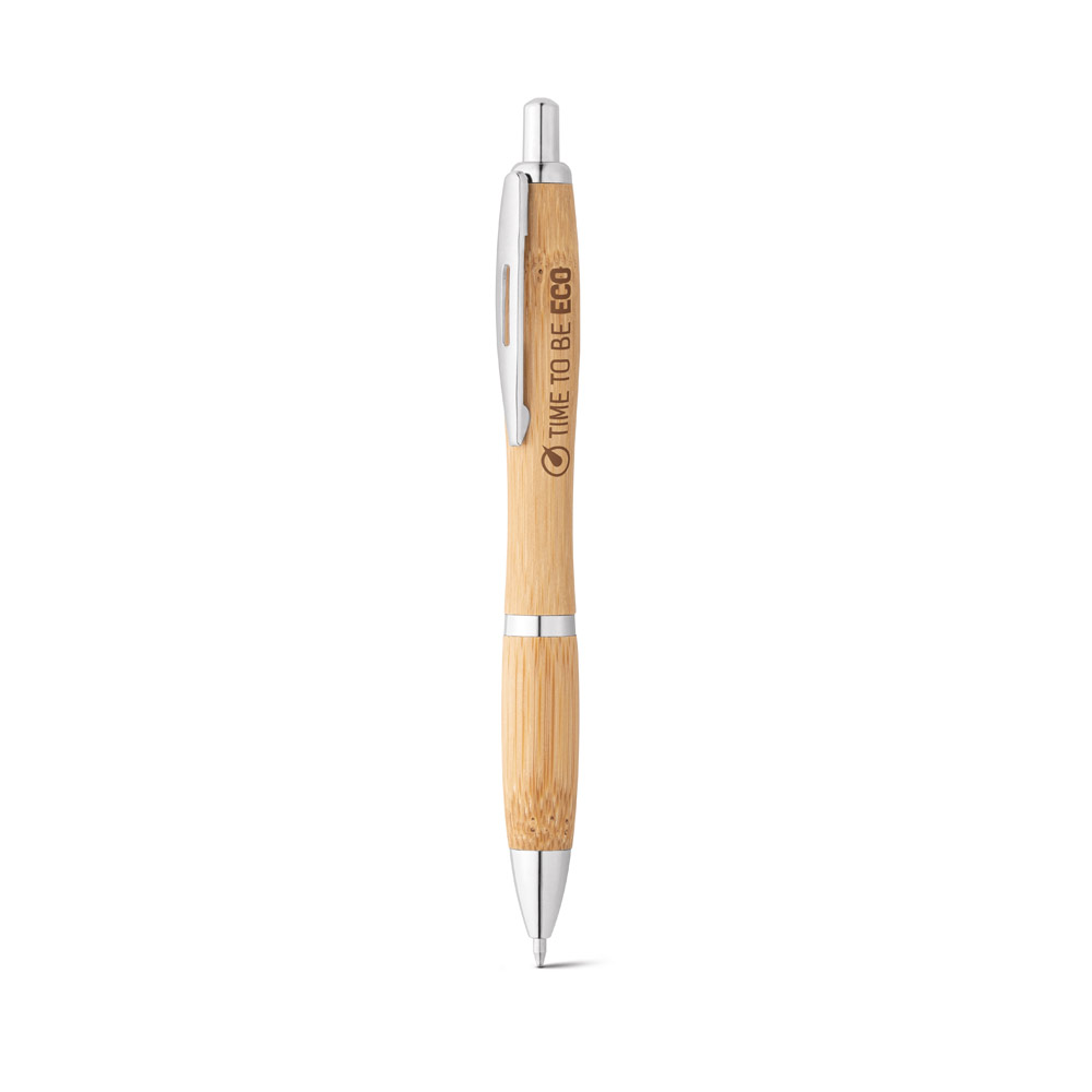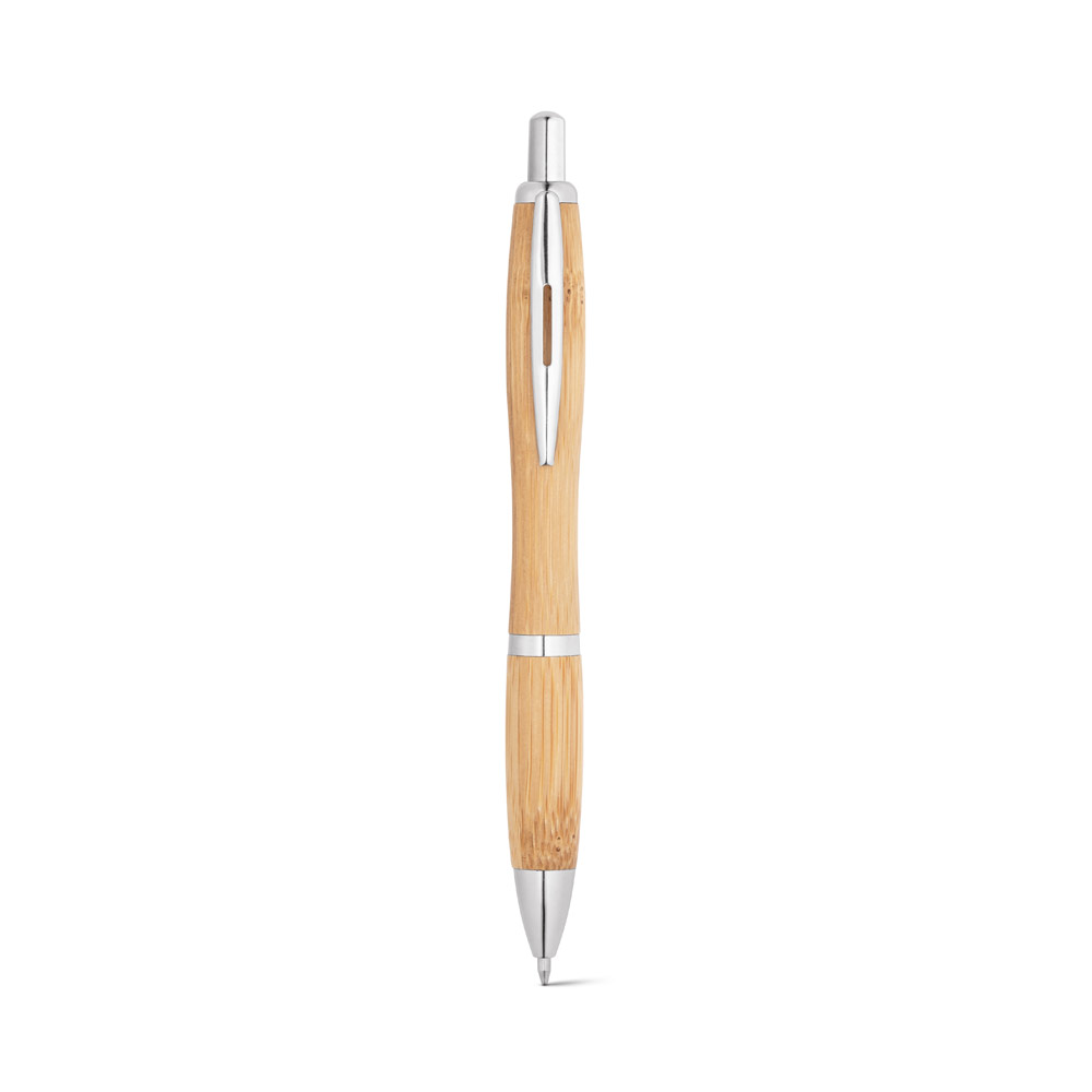 Esferográfica em bambu com clipe de metal. Até 1,5 km de escrita. ø13 x 143 mm
