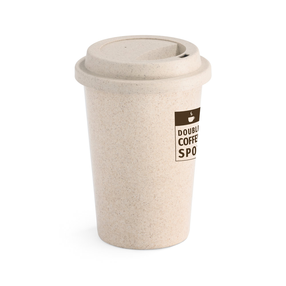 Copo para viagem em fibra de bambu e PP. Com tampa e capacidade até 450 ml. Food grade. ø93 x 134 mm