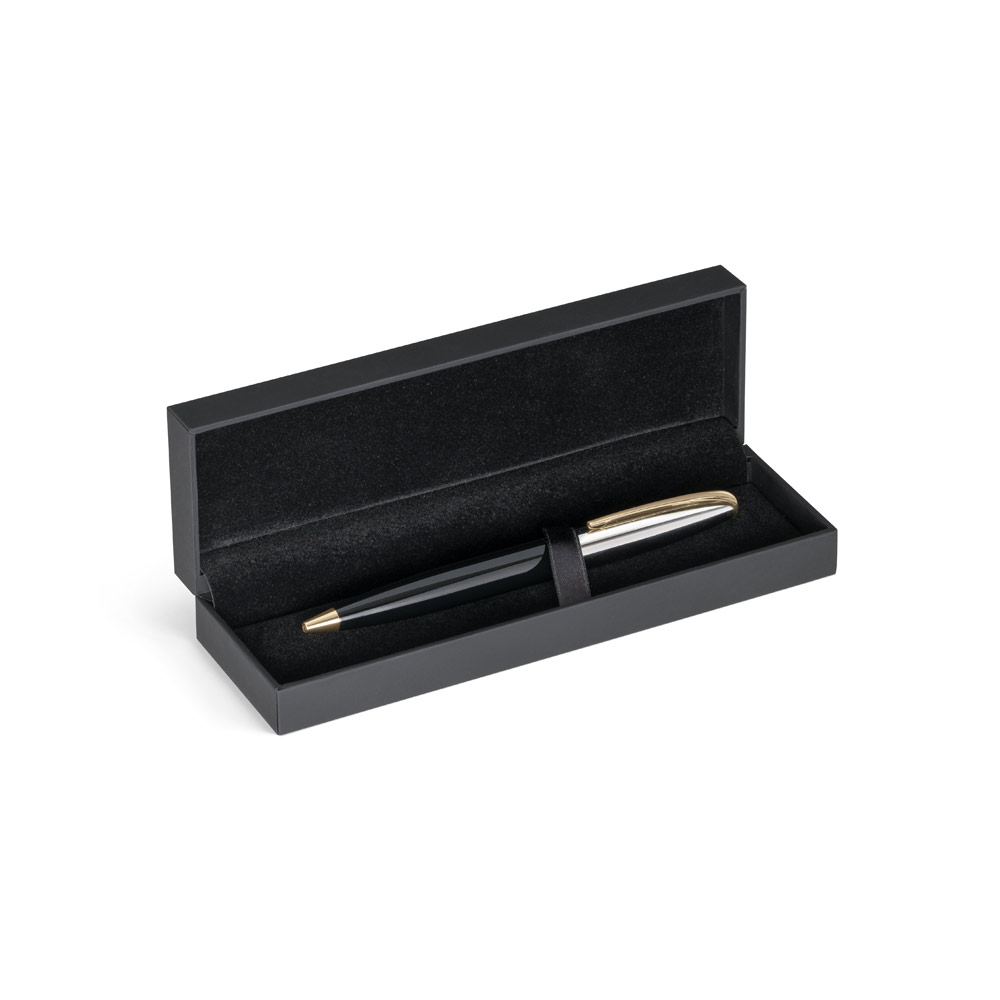 Esferográfica em metal. Clipe, anel e ponteira com banho de ouro de 18 quilates. Até 1,5 km de escrita. Fornecida em estojo almofadado. ø12 x 139 mm | Estojo: 179 x 56 x 30 mm