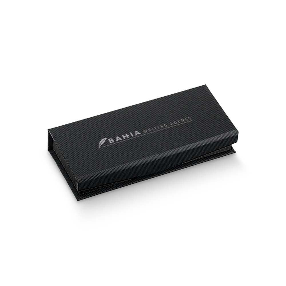 Estojo para 2 esferográficas com forro de veludo e fecho com imã. 193 x 87 x 34 mm