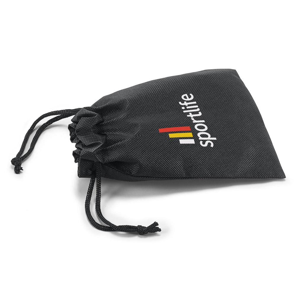 Fone de ouvido desportivo em ABS e silicone com transmissão por bluetooth. Autonomia até 3 h. Função para atender chamadas e conexão à playlist do dispositivo móvel. Incluso cabo micro USB para carregar. Fornecido com bolsa em non-woven. 150 x 135 x 50 mm