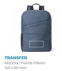 Mochila para notebook em rPET 600D com alças almofadadas. O compartimento principal tem 2 divisórias almofadadas para notebook até 15.6” e tablet até 10.5”. Contém dois bolsos com fecho na parte frontal e um bolso lateral em rede com elástico. Parte posterior almofadada com banda para transporte em trolley. 300 x 420 x 110 mm