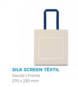 Sacola 100% algodão (140 g/m²) com alças de 60 cm. 375 x 415 mm